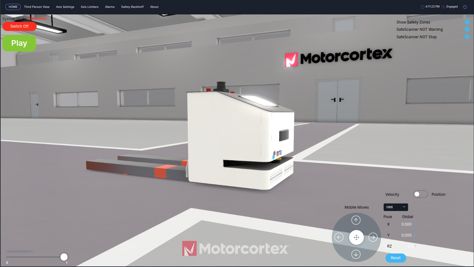 Motorcortex also has solutions for simulating Lidar data, directly from the browser, so you can also use the Motorcortex-Robot app as a simulator to test your localization and navigation software. Motorcortex allows Localization and Navigation software to ru on the same contoller hardware as the motion control software. It has already been tested with ROS/NAV2, Bosch Rokit and Sigmatek Locator.