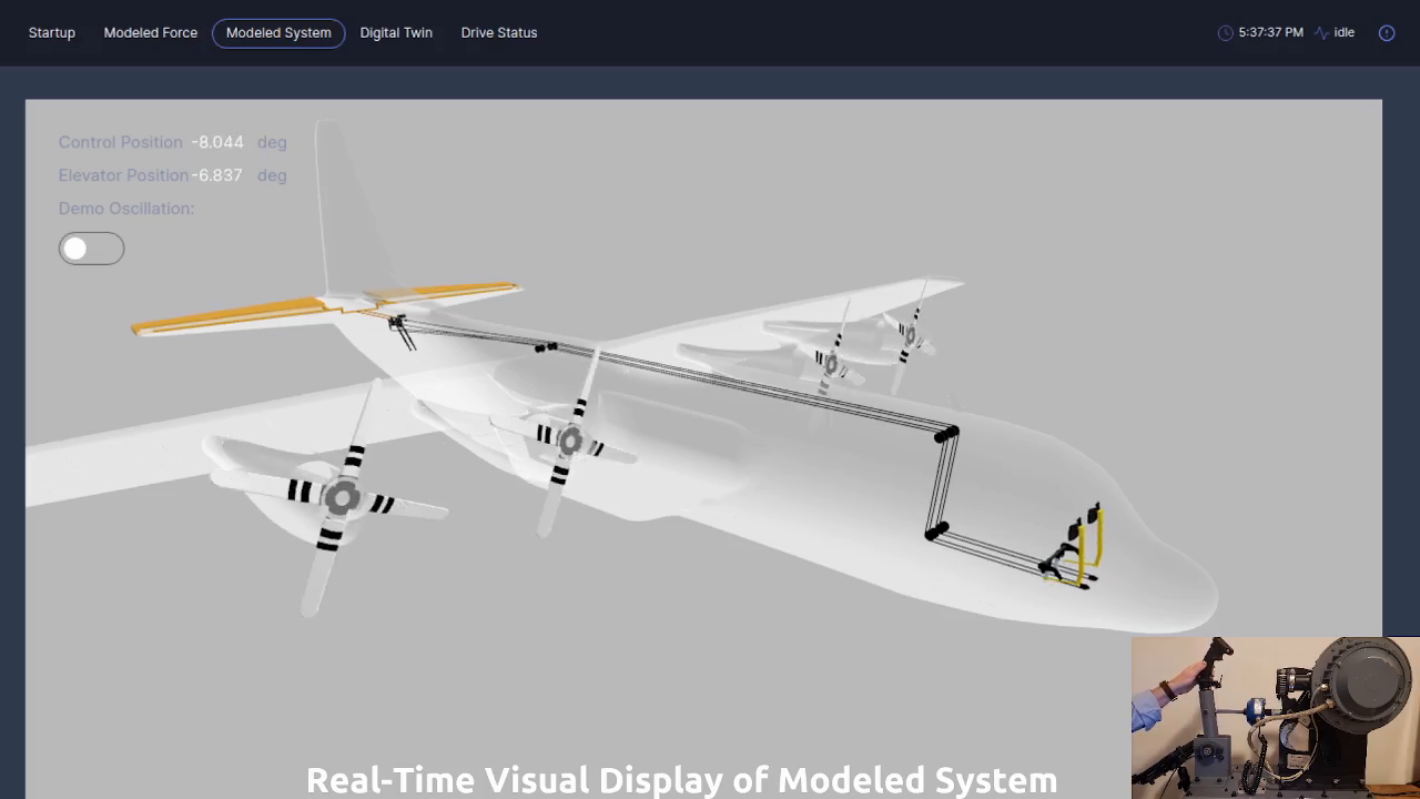 Motorcortex also has modules for Flight Control simulation, that simulates the behavior of the aircraft flight control system, so the pilot can virtually feel the mechanics. The aerodynamic forces are usually provided by another computer that streams its data to the control loading system. Below is a picture of a visualization in Motorcortex of the flight control system of a C130 aircraft.